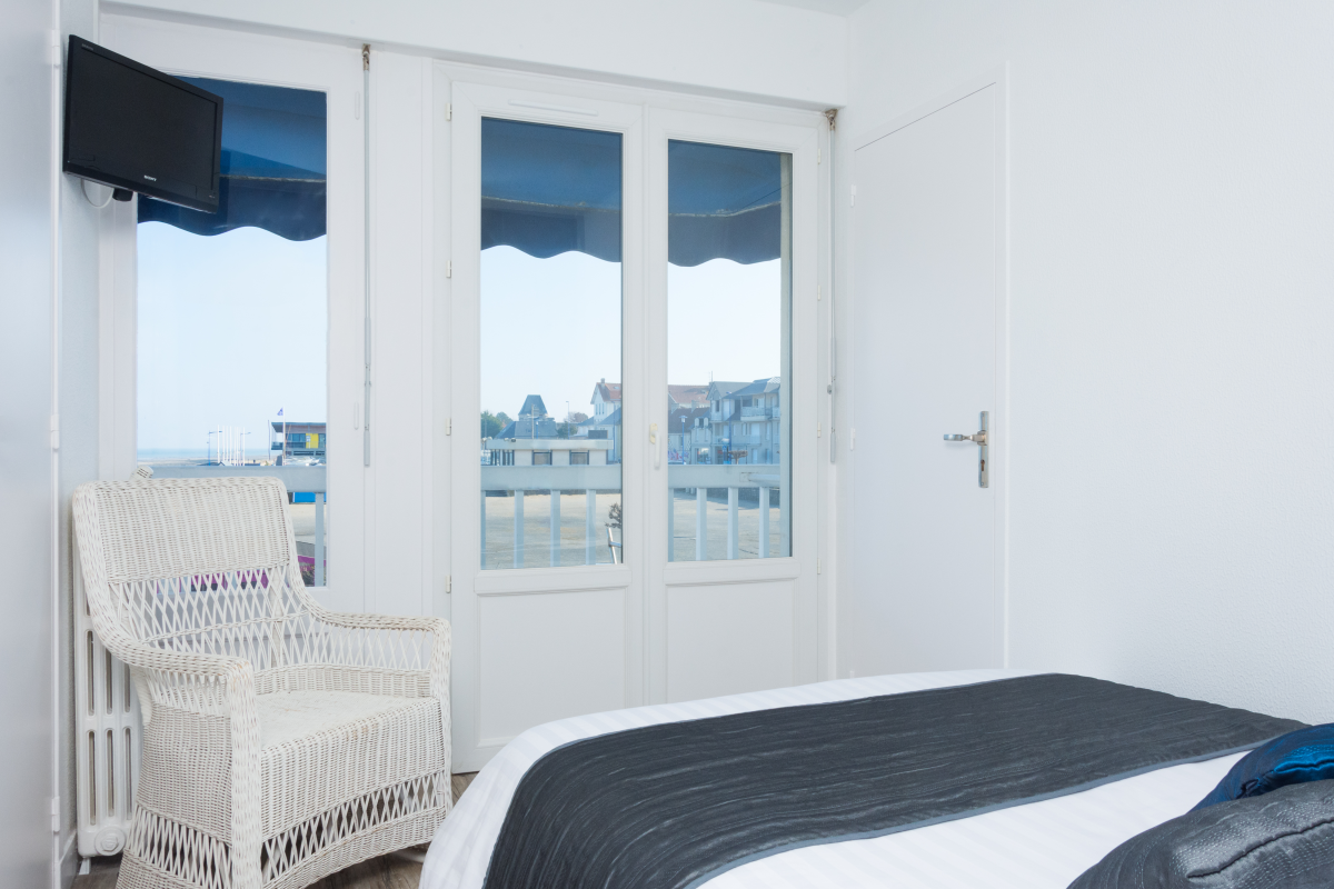 « Cabine 2 » chambre pour 2 personnes, 1 lit double (140 cm), côté mer avec balcon, douche, toilettes, lavabo, TV écran plat et téléphone (peut communiquer avec la « Cabine 1 » sur demande).
